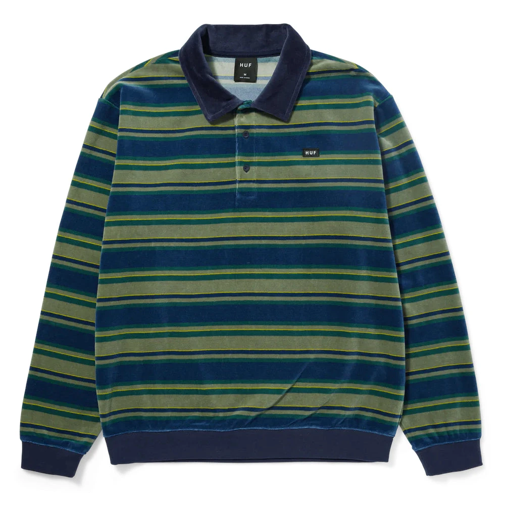 Holiday 23 wirft saisonale Konventionen über Bord und definiert die Basics der Wintergarderobe neu, indem es sich auf kontrastierende Farbpaletten, einzigartige grafische Platzierungen und die neu belebte HUF-Tradition stützt. Das Kramer L/S Velour Shirt vereint die Surfkultur der 70er Jahre mit Vintage-inspirierten Schnittmustern und verbindet Retro-Stil mit modernen HUF-Details.